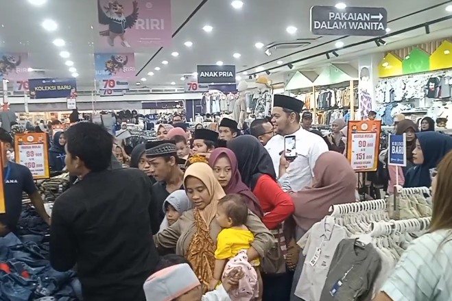 Setibanya di dalam toko, suasana langsung dipenuhi keceriaan. Anak-anak tampak bersemangat menarik tangan ibu mereka untuk mencari baju baru yang diinginkan.