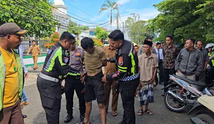 Pandeglang, Bantentv.com – Seorang pria yang diduga hendak melakukan transaksi narkoba tak berkutik saat diringkus jajaran Satlantas Polres Pandeglang. Penangkapan dilakukan setelah pelaku sempat berusaha kabur saat melihat petugas yang tengah berpatroli di kawasan depan Masjid Agung Ar Rahman, Senin, 2 Februari 2026.