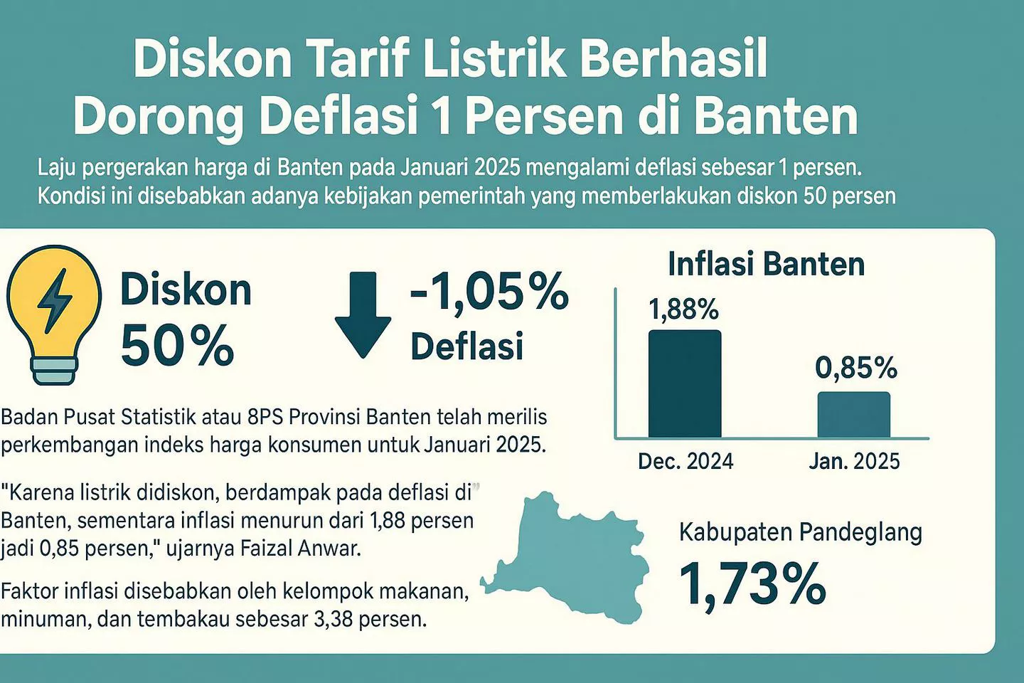 Hasilnya Banten mengalami deflasi 1,05 persen, ini merupakan dampak berlakunya diskon tarif listrik 50 persen dari pemerintah pusat.