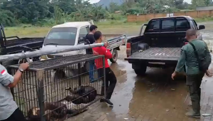 Proses evakuasi dilakukan dengan pengamanan ketat. Petugas terlebih dahulu membius kedua beruang sebelum dipindahkan dari lokasi.