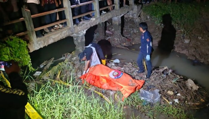 Korban ditemukan dalam kondisi meninggal dunia mengambang di sungai pada sore harinya.