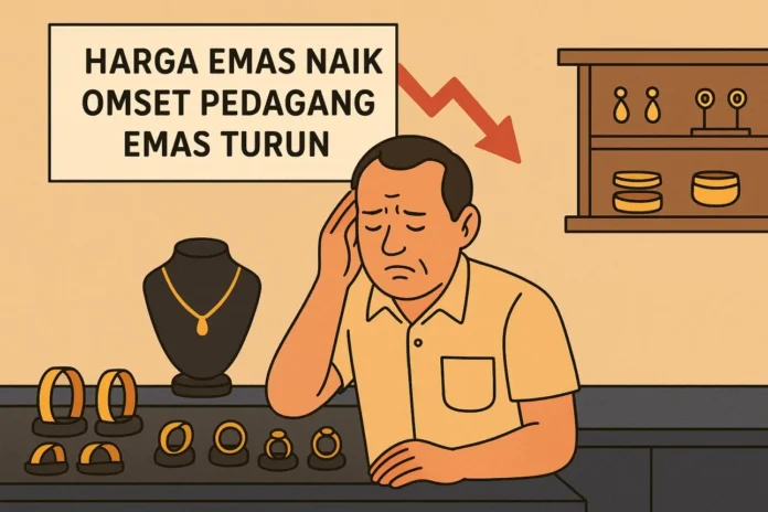 Meski harga emas tinggi biasanya menjadi kabar baik bagi investor, kondisi ini justru membuat omset pedagang emas turun. Hal ini disebabkan minimnya pembeli emas baru, sementara aktivitas yang mendominasi adalah penjualan kembali emas oleh masyarakat.