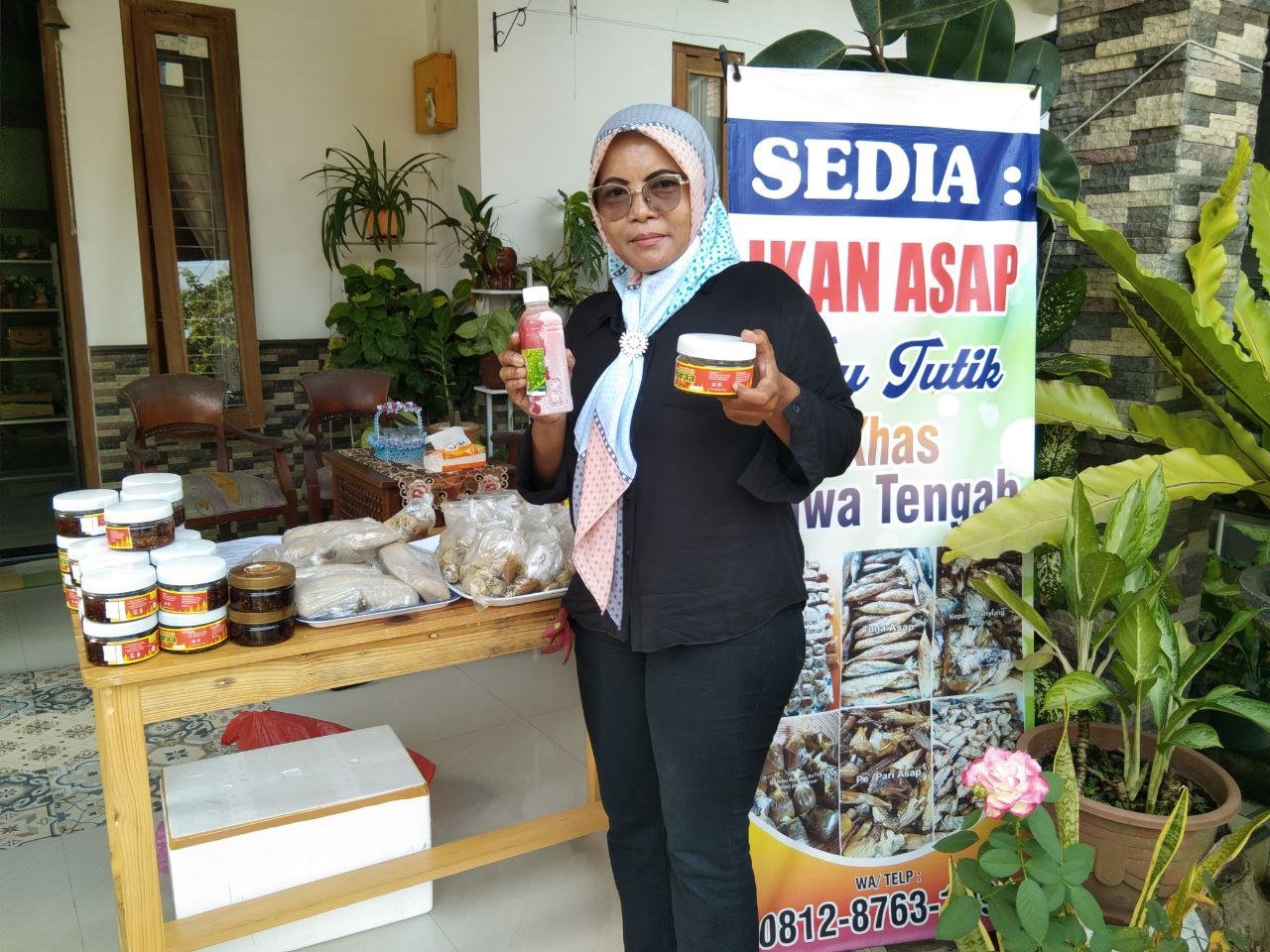 Lurah Dalung Okti Fianti saat memperlihatkan UMKM sate bandeng, ikan asap, makan khas tradisional yang ada di Kelurahan Dalung.