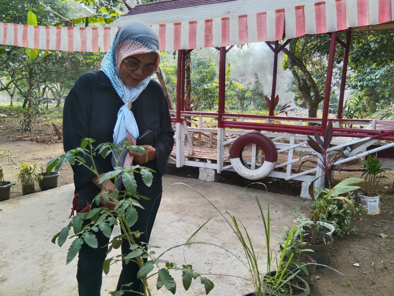 Lurah Dalung Okti Fianti saat menunukkan tanaman Toga di di RT 02 RW 01 Lingkungan Dalung.