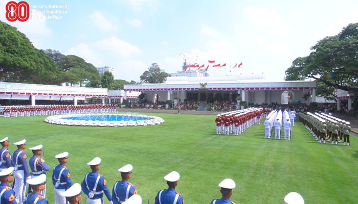 Momen sacral yang disiarkan secara langsung melalui kanal YouTube Sekretariat Presiden, Nampak prosesi pengibaran berlangsung khidmat. Lagu Kebangsaan Indonesia Raya mengiringi langkah tegap para Paskibraka.