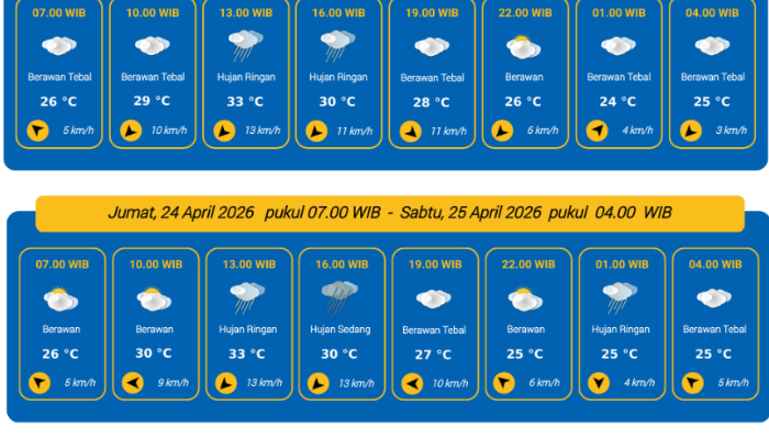 Rincian prakiraan cuaca Kota Serang 24 April 2026:
