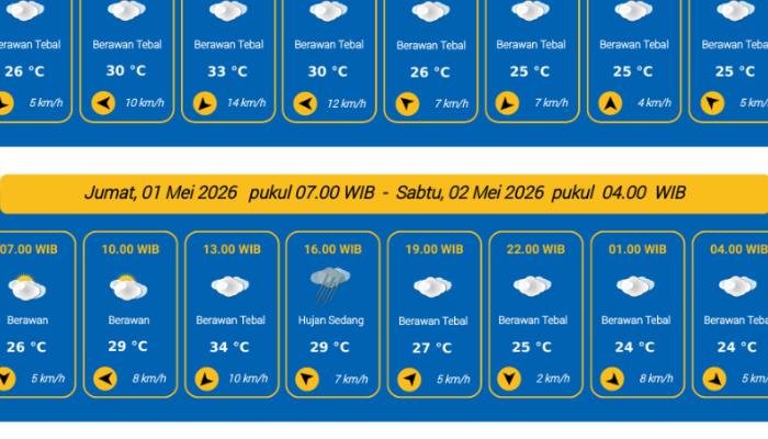 Rincian prakiraan cuaca Kota Serang 1 Mei 2026: